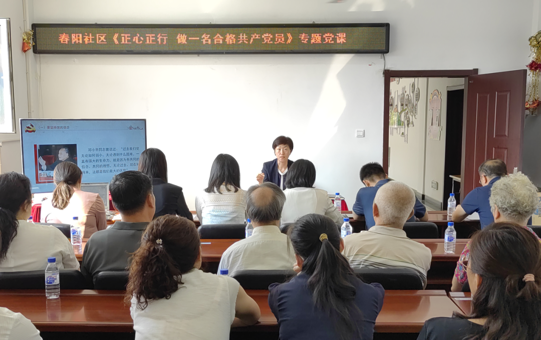近日,绿园区委常委、统战部部长谭丹到铁西街道春阳社区以《正心正行,做一名合格共产党员》为题讲专题党课。