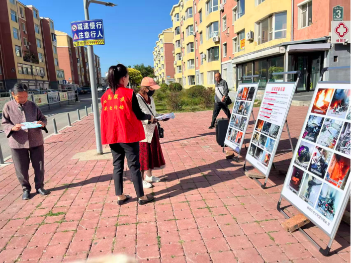 近日,自立街道开展消防安全主题宣传活动。在辖区人员集中的广场、出入口、活动中心等区域,以“视觉+听觉”的多维联动形式,将消防知识送到居民“家门口”。