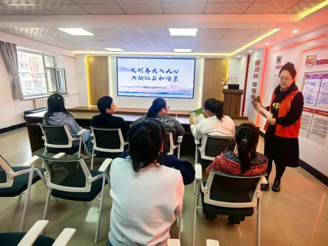 讲座开始,和平大街派出所民警李长志结合社区实际管理难点“直击要害”:“遛狗不牵绳、宠物粪便不及时清理,既破坏公共环境,也易引发邻里冲突;若犬只咬伤、抓伤他人后,主人不立即制止、送医、积极处理,还将面临五日以上十日以下拘留,可并处一千元以下罚款。”他手持《长春市养犬管理条例》宣传册,明确养犬人“硬规矩”:小型犬外出牵绳长度须控制在1.5米以内,且必须依法办证、定期年检、为犬只接种狂犬疫苗。