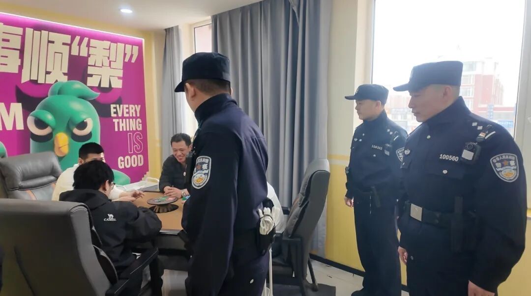 他们先走进一家棋牌室。“过年放松可以,一定要注意用火用电安全,取暖器别紧挨着易燃物。”民警一边检查消防设施,一边叮嘱。隔壁另一家棋牌室里,民警的提醒则换了重点:“娱乐行,但必须守住底线,绝对不能‘动钱’,涉嫌赌博我们一定依法处理。”