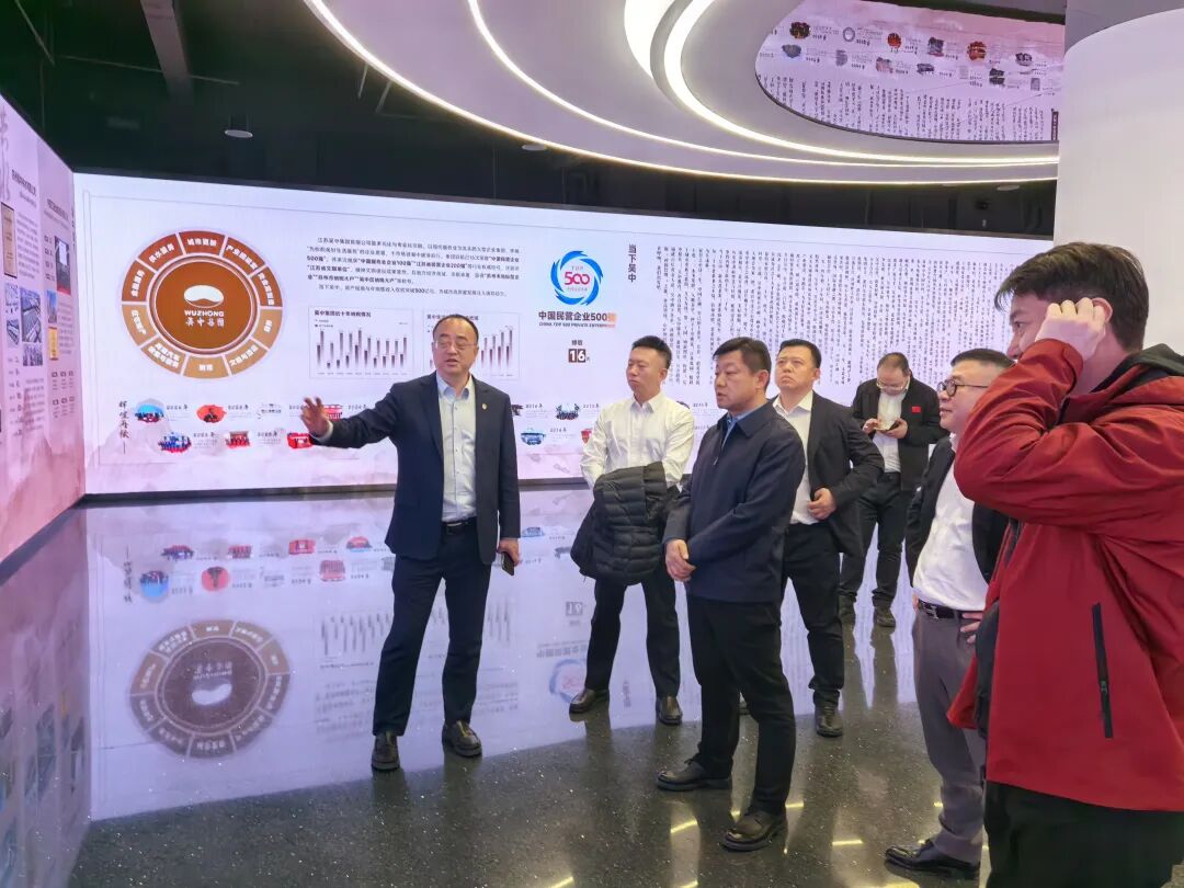 在吴中集团参观企业展示馆,代表团考察城市更新项目蓝芳华园、高端康养项目瑞颐椿熙里,学习城市品质提升、康养产业发展等方面的先进经验与成熟模式,就与吴中集团未来合作方向进行深入交流。