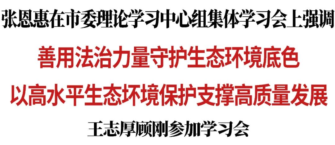 4月21日,市委书记张恩惠主持召开市委理论学习中心组集体学习会,深入贯彻习近平生态文明思想和习近平法治思想,学习《中华人民共和国生态环境法典》,引导领导干部牢固树立和践行正确政绩观,带头学法、自觉守法、主动用法,以法治力量守护长春生态环境底色,以高水平生态环境保护支撑高质量发展。市人大常委会主任王志厚、市长顾刚参加学习会。4月21日,市委书记张恩惠主持召开市委理论学习中心组集体学习会。市人大常委会主任王志厚、市长顾刚参加学习会。