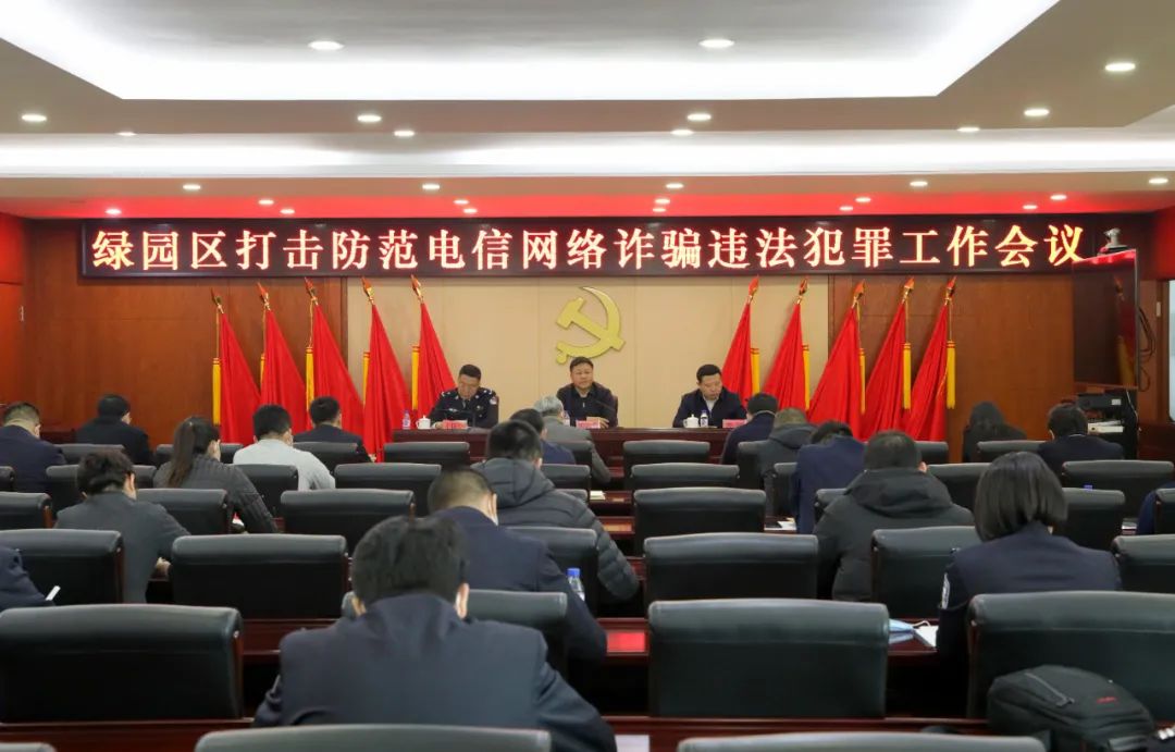 为深入贯彻习近平总书记关于打击治理电信网络诈骗犯罪的重要指示精神,全面落实全市打击防范电信网络诈骗犯罪工作会议要求,3月1日,绿园区召开打击防范电信网络诈骗犯罪工作会议,部署推进全区打击防范电信网络诈骗犯罪工作。区委书记宋长者出席会议并讲话。区委常委、政法委书记李刚主持会议。